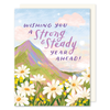 Send a heartfelt blessing with this playful card featuring a vibrant illustration of mountains and flowers. This card is perfect for encouraging someone to look ahead at their year ahead, especially on their birthday.