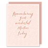 This gentle card is to remind someone that they are not alone in remembering the loss of a father in their life. Featuring delicate leaves and handlettering, this card is blank inside to hold your heartfelt words. Great for Mother's Day, a funeral, or just to remind someone they are not alone.